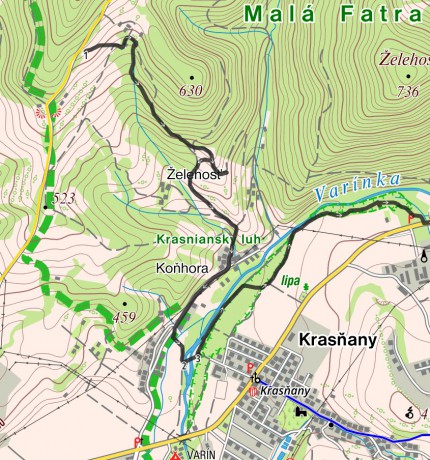 Prvá etapa trasy vedie cez bukové lesy, lesná cesta vedie smerom dolu k rieke Varínke. Po prejdení asi 1km asfaltovou cestou sa dostaneme k brodu, kde sa dá Varínka bezpečne prejsť aj počas zvýšenej vodnej hladiny. Pre peších, prípadne kone, ktoré nezvládnu prejsť brod je lepšie ísť cez obchádzku, cez most. Trasa sa predĺži asi o 5km.